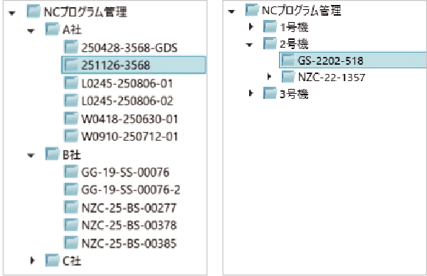 「取引先」「機械設備」「製品番号」「データの種類」など、運用に合わせた階層構造で整理・管理できます。