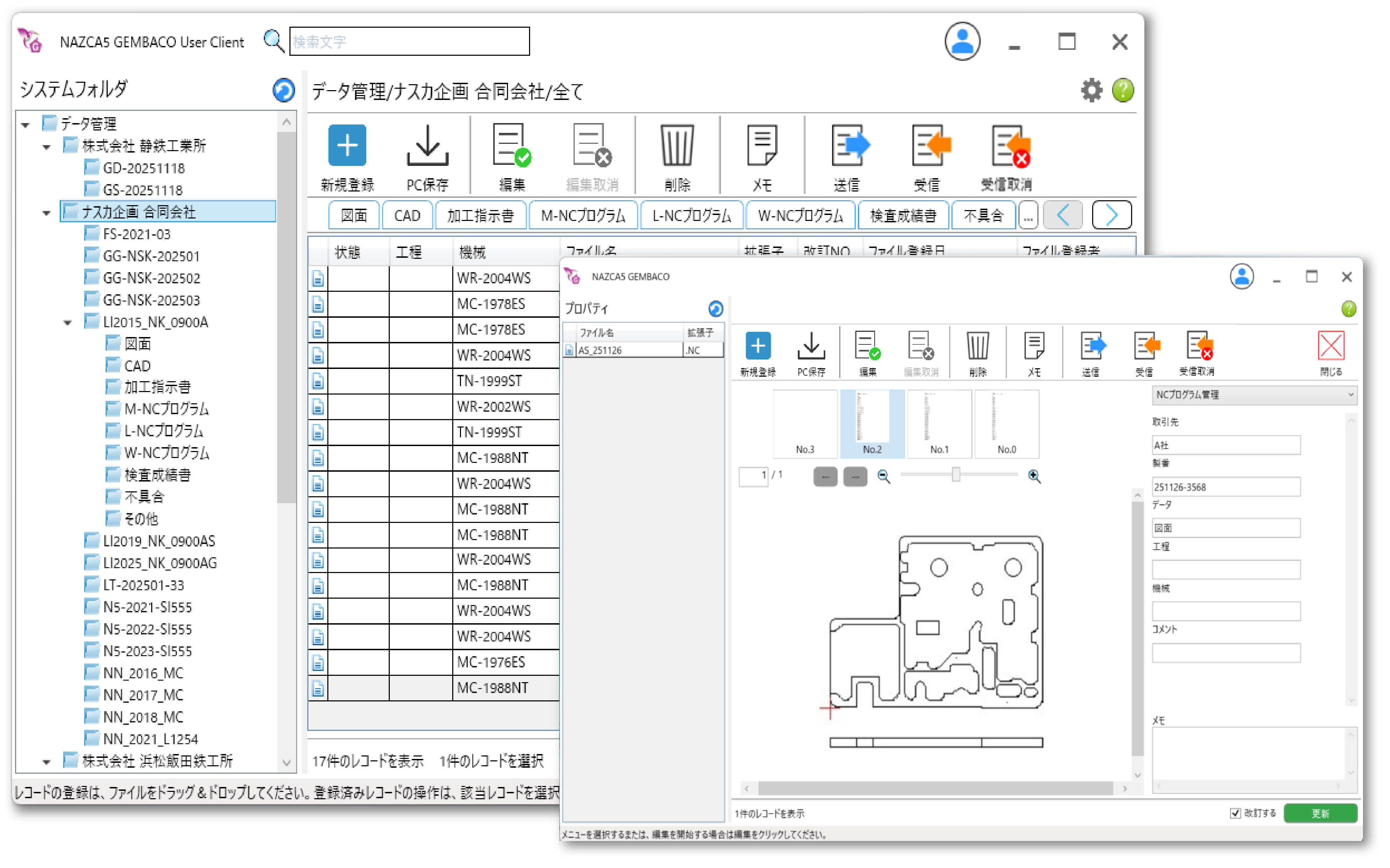 加工現場向けデータ管理ソフトNAZCA5 GEMBACO