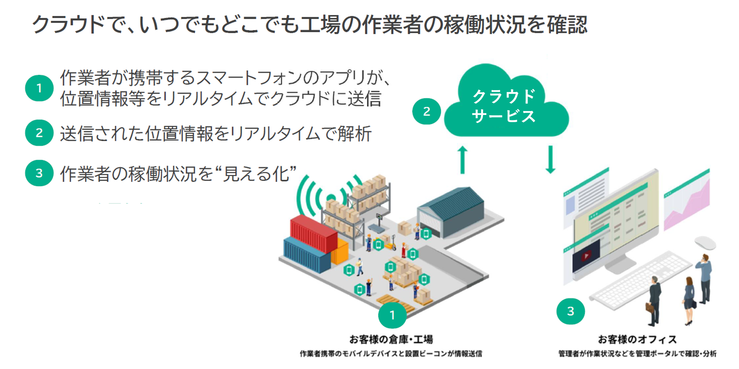 スマホを持つだけ、作業者の移動ルートを自動記録
