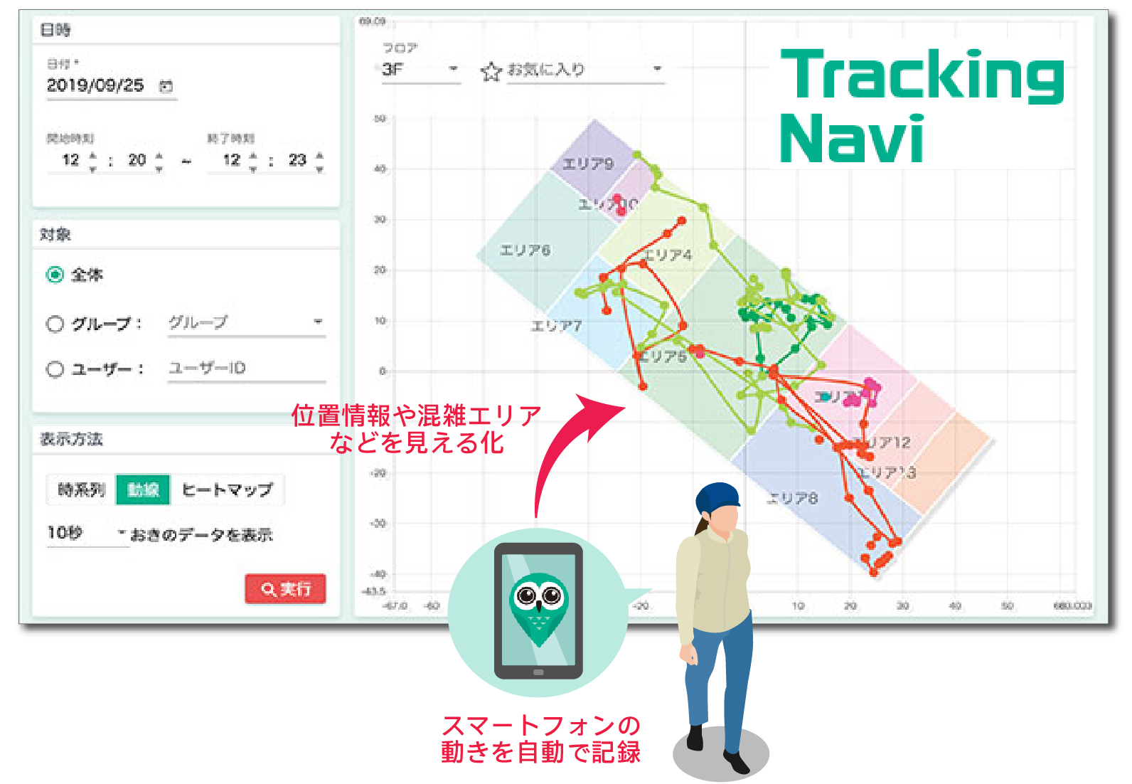 Naviは、作業者が携帯するスマートフォンの動きを自動で記録し、位置情報やムダな移動・混雑エリアなどを見える化する工場向け作業者分析ツールです。