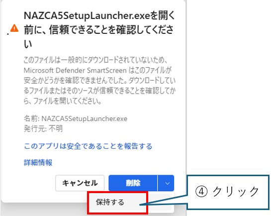(4)「保持する」をクリックして、ダウンロードを進めてください。